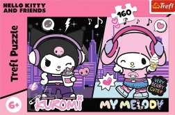 Szórakoztató puzzle KUROMI és HELLO KITTY motívummal a Trefl márkától, 160 darabbal, amely összeállítás után 410 × 275 mm méretű képet alkot. A kiváló minőségű, fényes, kalanderezett papír élénk színeket és biztonságos kirakást biztosít környezetbarát anyagok felhasználásával.