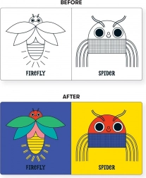 A Rovarok fürdőkönyv minden fürdést játékos felfedezéssé varázsol. Elég vízbe mártani, és a fekete-fehér illusztrációk csodásan kiszínesednek. A gyerekek játék közben gyakorolják a figyelmet, a kognitív képességeket és a finommotorikát.