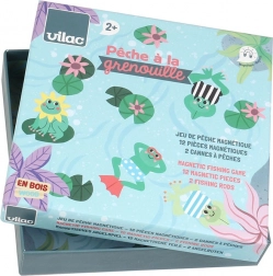 A csomag tartalmaz 12 mágneses fa békát, 2 mágneses botot és 1 játék alapot/dobozt. Ezt a játékot 2 éves kortól lehet játszani, és ideális 2 játékos számára.