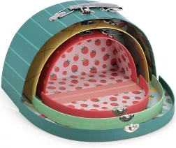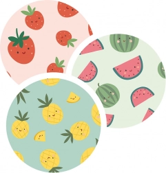 A készlet három különböző méretű bőröndöt tartalmaz, amelyek könnyen egymásba helyezhetőek. Mindegyik bőrönd lédús gyümölcsök, mint például a görögdinnye, ananász és eper motívumokkal van díszítve, és varázst hoz a gyermekek környezetébe.