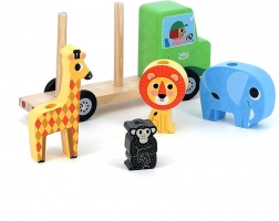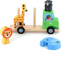 Ez az egyedülálló fa játék egy összeilleszthető autó formájában ötvözi a mozgó közlekedési eszközöket és a aranyos állatokat a safariról. Gyermeke sok szórakozást talál az állatok felismerése és történetek alkotása közben. A játék ideális a finom motorikus képességek, az ügyesség és a kéz-szem koordináció fejlesztésére.