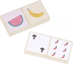 Fa dominó gyümölcs és zöldség motívummal nagyszerű játék gyerekeknek, amely nemcsak szórakoztató módon ösztönzi a memóriát és a megfigyelőképességet, hanem a finommotorikát és a kéz-szem koordinációt is fejleszti.
