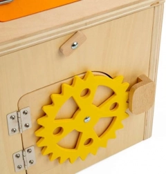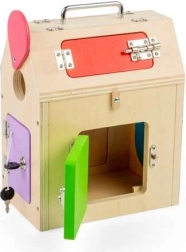 A Bigjigs Toys Activity board Házikó többfunkciós játék kiskorú gyermekek számára. A kedvelt lakatok és labirintusok órákon át szórakoztatják a gyermekeket, miközben fontos készségeket fejlesztenek: