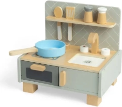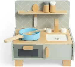 Kompakt design finom, semleges színekben, amely remekül illik minden gyermekszobába vagy játszószobába. FSC® tanúsítvánnyal rendelkező fából készült és nem mérgező festékekkel van festve, ami fenntartható és biztonságos szórakozást biztosít a 3 évesnél idősebb gyermekek számára. A szórakozás mellett ez a konyha elősegíti a képzelet és kreativitás fejlődését, miközben a gyerekek konyhai szerepeket játszanak.
