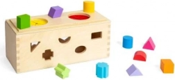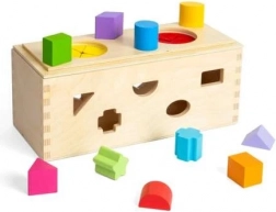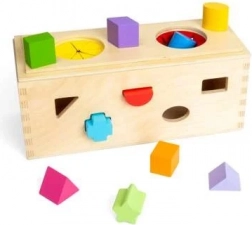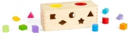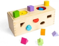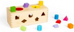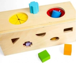 Gazdagítsa gyermekei érzékszervi élményét ezzel a fa titokzatos dobozzal. Helyezzen 10 alakzatot a doboz falain lévő megfelelő nyílásokba. A felső két nyíláson keresztül a gyerekek behelyezhetik kezeiket, tapinthatják és felismerhetik a doboz belsejében található alakzatokat, ami javítja motoros készségeiket és kéz-szem kooridnációjukat.