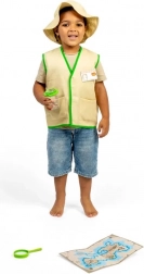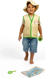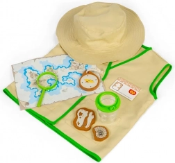 A felfedező jelmez ideális a képzelet és a kreativitás fejlesztéséhez. Tartalmaz mellényt, kalapot, névtáblát, részletes térképet, nagyítót, fa kövületet, iránytűt és speciális rovarnéző nagyítót, ami nagyszerű szórakozást és tanulást biztosít.