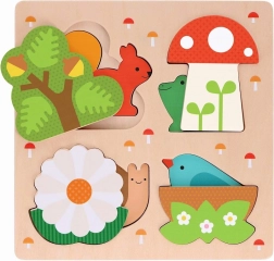 Fedezd fel a természet varázsát a Petit Collage illesztős puzzle segítségével, amely elbűvöli gyermekeidet. Ez a többrétegű, nyolc darabos puzzle bemutatja a kedvelt állatok, mint például békák, madarak, mókusok és csigák otthonait. Helyezd el minden darabot a megfelelő állat otthonához.