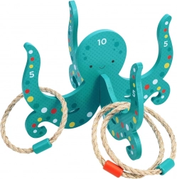 Tapasztalja meg az órákig tartó szórakozást ezzel az eredeti, polip formájú gyűrűdobáló játékkal, amely ideális családi játékokhoz. 100% FSC® tanúsítvánnyal rendelkező fából készült, ez a termék támogatja a felelős erdőgazdálkodást és a természet kíméletes megközelítését. A játék célja a kéz-szem koordináció gyakorlása és a dobások pontosságának növelése.