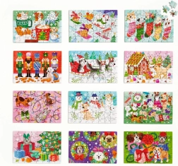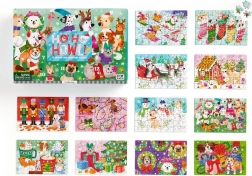 Bemutatjuk a szórakoztató puzzle készletet, amely várakozással és örömmel teli visszaszámlálássá varázsolja a karácsonyra várakozást. Minden ablak egy 48 darabos mini puzzle-t tartalmaz, olyan kutyák képeivel, akik téli mulatságokkal és ünnepi készülődésekkel foglalkoznak, mint például szánkózás, hóember építés vagy forró csokoládé kortyolgatás.