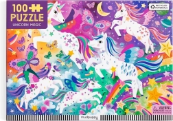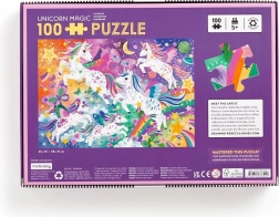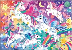 Ezzel a 100 darabos kirakóval elmerülhetsz egy álomszerű tájban, ahol egyszarvúak szórakoznak villogó csillagok, csillogó gyémántok és egyéb űrbeli jelenségek között. Fedezd fel a csillagoktól díszített ég titkait az egyszarvúakkal! A Varázslatos egyszarvúak puzzle újrahasznosított anyagokból készült, és megfelel a CPSIA, ASTM, CE biztonsági normáknak.