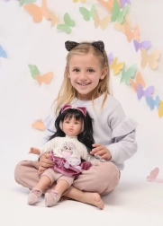 Ez a minőségi ruhaszett egyedi megjelenést kölcsönöz a babának, és segíti a gyerekeket a fantázia fejlesztésében az öltöztetés és történetalkotás során. A spanyol kézműves gyártás precíz kidolgozást és kellemes, gyerekkezekhez illő anyagokat biztosít.