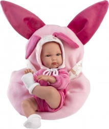 A baba kezei és lábai ízülettel vannak rögzítve, amely lehetővé teszi az helyzetbe állítást és ülés képességét. A baba mérete 35 cm, és kézzel készült Spanyolországban. Díszdobozban érkezik, ami ideális ajándékká teszi. 3 éves kortól ajánlott. A babához további Llorens márkájú eredeti ruhák vásárolhatók a 35-36 cm-es méretben.