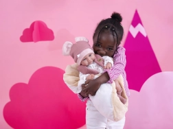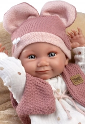 Ez a realista baba Llorens, Spanyolországban kézzel készített, részletes kidolgozást nyújt a gyermek testének minden aspektusáról, beleértve az aranyos redőket és a nemi jellegeket. A baba teljesen állítható és képes ülni a végtagok ízületi kapcsolatai révén. A vinil test kényelmes fürdetést tesz lehetővé a babának, de óvatosság szükséges a szempillák miatt. A fokozott gondozás hosszabb élettartamot biztosít.