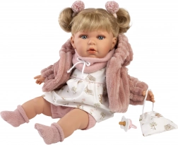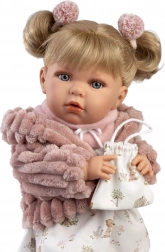 A Llorens Julia baba puha textil kialakításával és a fején és végtagjain található minőségi vinil felülettel felejthetetlen játékélményt nyújt. Amikor eltávolítja a cumit, elkezdi mondani a szavakat, mint például 'anya' és 'apa', és valódi síró hangokat ad ki, amelyek megnyugtathatók mágneses cumival.