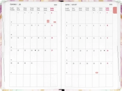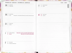 Elegáns napló 18 hónapos, rózsaszín márvány stílusban. Áttekintést nyújt a 2025 és 2026 évekről cseh és szlovák ünnepekkel.
