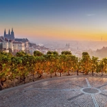 A város szélén lévő szőlőültetvények látványa napnyugtakor gazdag színpalettával egészíti ki az évét.
