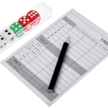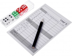 Ez az univerzális készlet mindent tartalmaz, amire szükség van a Yams és más véletlenszerű vagy társas játékok játékához. A jól olvasható pöttyökkel ellátott kockák, a mellékelt pontozófüzet és a ceruza lehetővé teszik, hogy bárhol, bármikor játszhasson. A masszív tok gondoskodik róla, hogy a tartozékok mindig együtt legyenek.