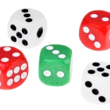 Öt klasszikus, hatoldalú kocka, pontozó blokk, ceruza és strapabíró tok – pillanatok alatt játékra készen.