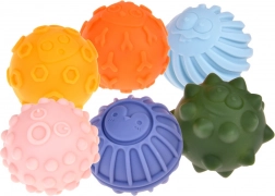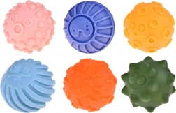 A hat labda mind különböző alakú és textúrájú, valamint különféle kiemelkedéseik serkentik a tapintási érzékeket és támogatják az érzékszervi receptorok fejlődését. Ez segíti a gyerekek koordinációs készségeinek és tapintási képességeinek fejlődését.