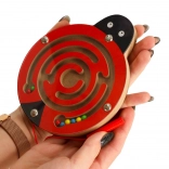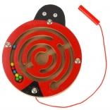 Szórakoztató, katicabogár alakú fa játék mágneses tollal, amely segít a gyerekeknek a színes golyókat a labirintusban terelni. Fejleszti a finommotorikát, a koordinációs képességeket, a logikus gondolkodást és a koncentrációt. Strapabíró kivitel átlátszó fedéllel és rögzített tollal a biztonságos útközbeni játékhoz.