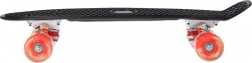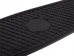 A deszka tartós műanyag anyagból készült, amely biztosítja a szükséges erősséget és stabilitást. A durva felület garantálja a jó tapadást és a biztonságos lábtartást menet közben.