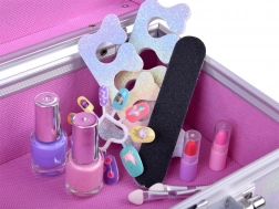 Tartalmaz körömlakkokat, rúzsokat, szemhéjfestékeket, applikátorokat és még sok mást – mindent, ami a szép sminkeléshez szükséges.