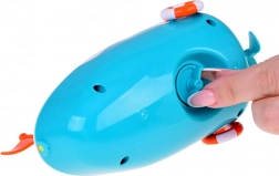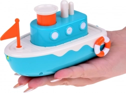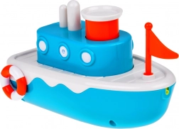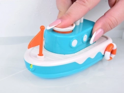 Ez a gyermek hajó gombbal rendelkezik, amely vizet enged ki a nagyobb móka érdekében a fürdés alatt.
