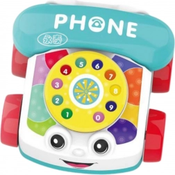A telefon forgó számlappal, színes elemekkel és mosolygós arccal rendelkezik, ami ösztönzi a gyermeket, hogy felfedezze a hangok, formák és mozgások világát. Az olyan mozgatható részek, mint a számlap vagy a kerekek, serkentik a gyerek kíváncsiságát, és bátorítják az aktív felfedezésre.