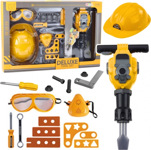 A Deluxe Tool Set komplett, valósághű és vonzó játék a gyerekek számára, akik szeretnek belekukkantani a felnőttek világába, és saját műhelyükről álmodoznak. Ez a gyermek készlet 21 elemet tartalmaz, lehetővé téve a gyermek számára, hogy építő vagy mérnök szerepébe képzelje magát.