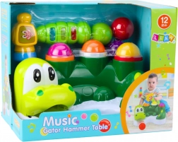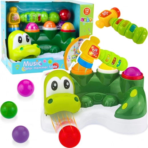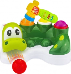 A gyermek a kalapácsot használja színes labdák ütésére, amelyek a játék belsejébe esnek, majd a mozgó krokodil szájából kilövődnek, ezáltal szórakoztató csúszdát alkotva. Az interaktív kalapács világít, dallamokat játszik és további hangokat ad ki egy speciális bohócgomb megnyomásával.