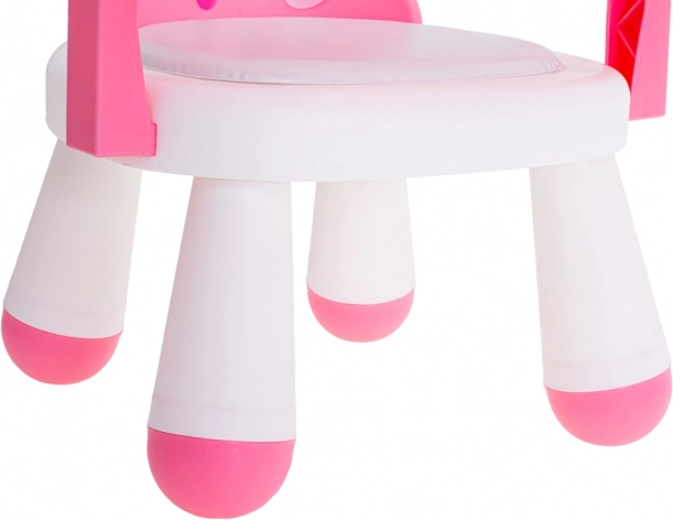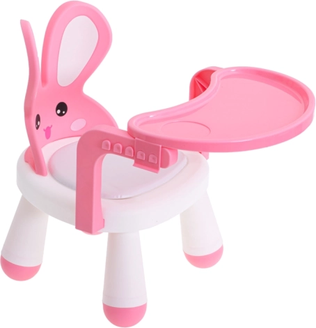 Ez a multifunkciós, nyuszi motívumos gyerekszék kellemes rituálévá varázsolja az étkezést és a játékot. A levehető rózsaszín tálca etetéshez, rajzoláshoz és építőkockázáshoz is használható, míg a füles ergonomikus háttámla támogatja a helyes és kényelmes ülést.