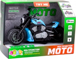 A gyerek motorkerékpár élénk kék színben van tervezve, és kiváló minőségű műanyagból készült, amely ellenáll a mindennapi használatnak. Széles kerekekkel, masszív szerkezettel és ergonomikus fogantyúkkal van felszerelve, amelyek stabilitást és kényelmet garantálnak játék közben. A motor klasszikus egykerekű járművet imitál, valósághű motor és karosszéria részletekkel, ami növeli a hitelességet. A játék beépített világítási és hanghatásokkal rendelkezik, amelyeket egy hozzáférhető helyen lévő gomb megnyomásával lehet aktiválni. A gyerekek motorhangokat hallanak, és villogó fényeket látnak a motor elején. Ezek az interaktív elemek felkeltik a figyelmet, stimulálják a gyermek érzékeit, és gazdagítják a mindennapi játékot. Remek ajándék ötlet, amely minden kis jármű-rajongót és dinamikus játék kedvelőt örömmel tölt el.Specifikációk