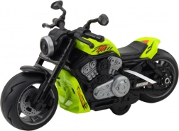 A gyerekmotorkerékpár feltűnő zöld színű, és magas minőségű, napi használatra ellenálló műanyagból készült. A motorkerékpár széles kerekekkel, masszív testtel és ergonómikus fogantyúkkal rendelkezik, ami stabilitást és kényelmet nyújt a játék során. Alakját klasszikus egy nyomvonalú járművek ihlették, és olyan részletek, mint a valósághűen kialakított motor és karosszéria vonalak, autentikus megjelenést kölcsönöznek a motornak.