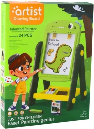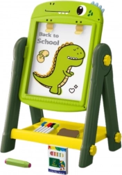 A tábla papírrögzítő klipjei lehetővé teszik a gyerekek számára, hogy műalkotásokat készítsenek. A csomag gazdag kiegészítő készletet tartalmaz, beleértve a filctollakat, krétákat, szivacsot, valamint színes mágneseket betűkkel, számokkal és matematikai szimbólumokkal.