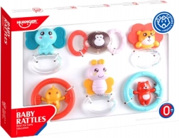 Állatfigurás csörgő és rágóka szett babáknak, 6 darab