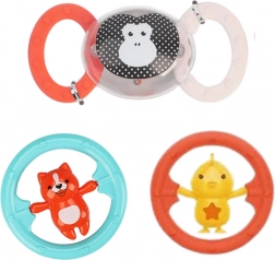 A szett biztonságos és nem mérgező anyagokból készült, amelyek megfelelnek a legmagasabb minőségi szabványoknak. Ez biztosítja a biztonságos és hosszútávú használatot. Ez a játék ötvözi a csörgő, rágóka és játék funkcióit, és tökéletes társ a babájuk számára, amely segít több szinten fejlődni.