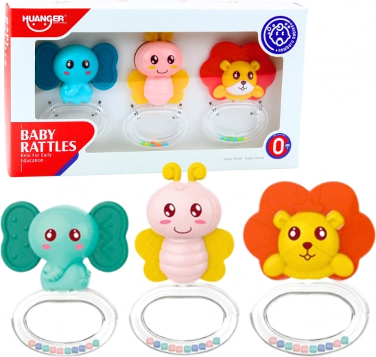 3 Darabos Csecsemő Csörgő és Rágóka Állatkák Készlet