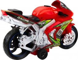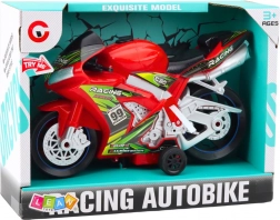 A piros motor kiváló minőségű, sérülésálló műanyagból készült, és masszív széles kerekekkel és stabil támasztékkal rendelkezik, amely biztonságos és kényelmes játékot biztosít különféle felületeken. A gombnyomásra aktiválódó fény- és hangeffektusok valósághű motorhangokat és fényhatásokat kínálnak, amelyek még inkább izgalmassá teszik a játékot.