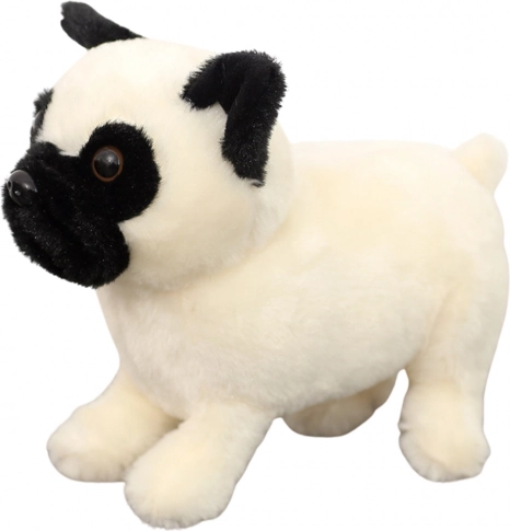 Aranyos plüss mopsz fehér 19 cm nagyszerű társ és dekoráció. Puha, biztonságos anyagból készült gyermekek számára.