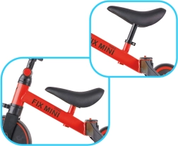 A Trike Fix Mini három vezetési módot kínál: háromkerekű futóbicikli a legkisebbeknek, klasszikus tricikli pedálokkal az első keréken, valamint gyakorló mód egymáshoz közelebb álló hátsó kerekekkel az egyensúly fejlesztésére a kétkerekű biciklire váltás előtt. A gyors konfigurációváltásnak köszönhetően pillanatok alatt a gyermek életkorához és képességeihez igazíthatja.