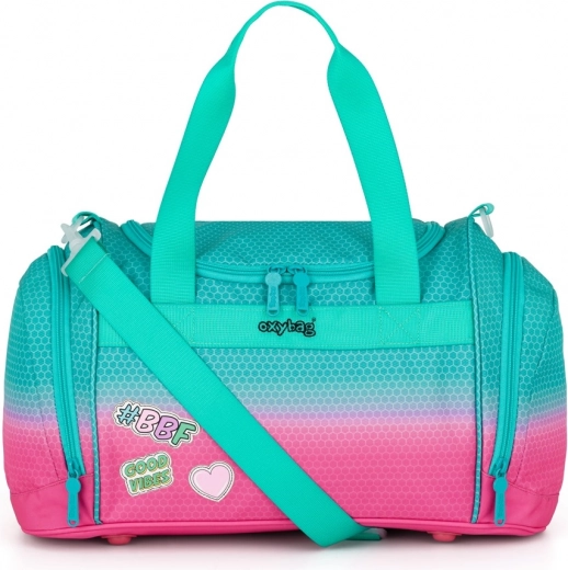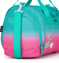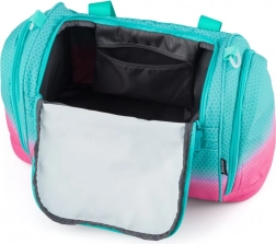 A táska büszkélkedhet egy gradiens dizájnnal, amely türkizből rózsaszínbe vált. Ez a stílusos kombináció a táskát nem csak praktikussá, hanem divatossá is teszi.