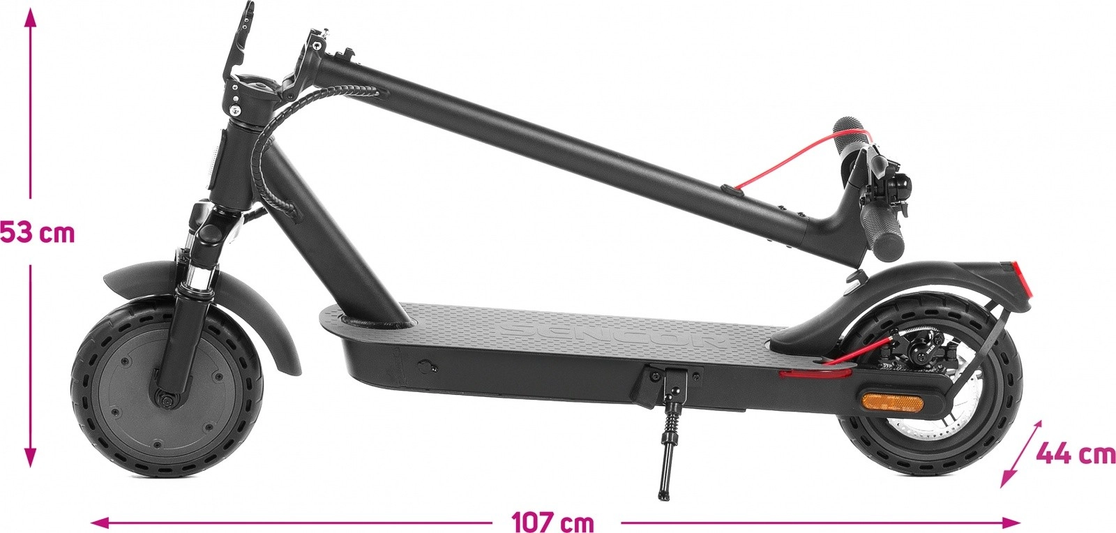 A hulajnoga négy vezetési módot támogat, amelyek lehetővé teszik a teljesítmény és az akkumulátor fogyasztásának optimalizálását, így egyetlen töltéssel akár 30 km hatótávolságot is elérhet. A SENCOR SCOOTER alkalmazás révén teljes kontrollt nyerhet a beállítások felett, és jelszóval megvédheti a hulajnogát a nem kívánt használattól.