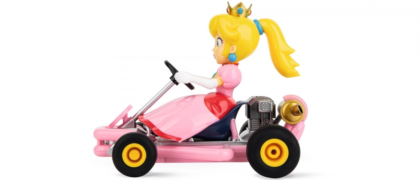 Élvezze a rózsaszín verseny kalandot a Carrera RC által tervezett távirányítható Mario Kart autóval 1:18 méretarányban. Peach hercegnő új gokartján rajtol, készen áll bármely versenypályára, 9 km/h maximális sebességgel és 21 cm hosszúsággal.
