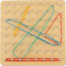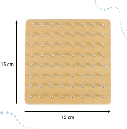 A lap simára csiszolt fából készül, éles élek nélkül. A fém tüskék lekerekített vége véd a karcolásoktól és segít a gumikat a helyükön tartani. Kompakt méreteinek köszönhetően a geoboard otthonra és utazáshoz is ideális.