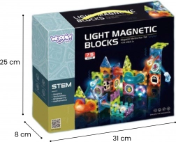 Ez a mágneses építőkészlet gazdag elemkészletet kínál egyedi építmények és dinamikus golyópályák létrehozásához. A világító golyóknak és reflektoroknak köszönhetően látványos, „ragyogó” pálya jön létre, amely leköti a gyerekeket és meghosszabbítja a játékidőt. Az erős mágnesek biztosítják a szilárd kapcsolódást, így az összetettebb 3D szerkezetek is stabilan állnak.