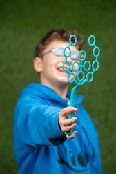 Élvezze az órákig tartó szórakozást ezzel az egyedülálló buborékkészítő szettel! Csak mártsa a fát az oldatba, és egy finom kézmozdulat vagy enyhe szélfúvás végtelen számú buborékot hoz létre, amelyek különböző színekben csillognak.