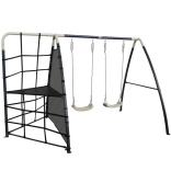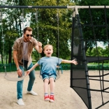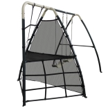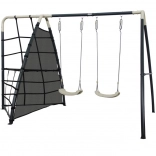 Az egyes komponenseket a kényelem és a biztonság szem előtt tartásával tervezték. Az erős földhorgonyok biztosítják a stabilitást, még akkor is, ha a gyerekek teljes gőzzel lendületet kapnak. A polipropilén ülések könnyűek, tartósak és könnyen tisztíthatóak. Az ergonómikus forma és a megfelelő mélységű mászóháló kényelmet és további attrakciót biztosít a játék során.