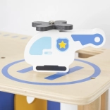 A háromszintes VIGA rendőrőrs 3 éves kortól kis rendőröknek készült. A masszív, kék részletekkel díszített fa felépítés könnyű hozzáférést kínál minden szinthez, és lehetővé teszi a gyerekek számára a bevetések, üldözések és az elkövető elfogásának élethű eljátszását. A helikopter-leszállónak, a cellának és a lőtérnek köszönhetően a játék új dimenziókat nyer.