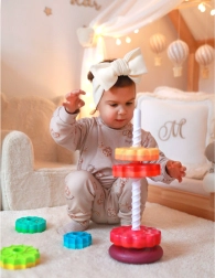 Szeretné órákra lekötni a gyermekét? Ezt a Hajlított torony játék garantálja a Wooipie-től, ami nemcsak szórakoztat, hanem tanít is. Alkossák meg a saját színes tornyukat hat kétszínű korongból, és figyeljék meg, hogyan alakul át minden varázslatos formákkal.