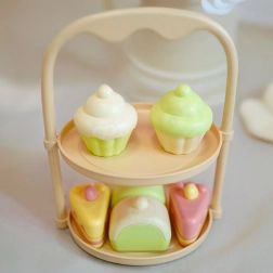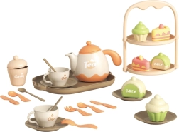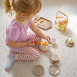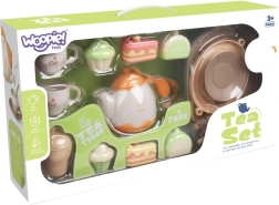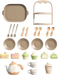 Stílusos WOOPIE gyerek teázókészlet desszertekkel, akár 25 elemmel a vidám délutáni teázásokhoz. A gyerekek teát tölthetnek, süteményeket tálalhatnak, és fejleszthetik képzeletüket, finommotorikájukat és szociális készségeiket. A finom pasztell színek és a biztonságos kivitel minden kis házigazdának örömet szerez 3 éves kortól.